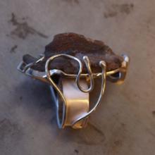 Ring gemaakt van zilver en Mokume (koper, tombak, zilver).